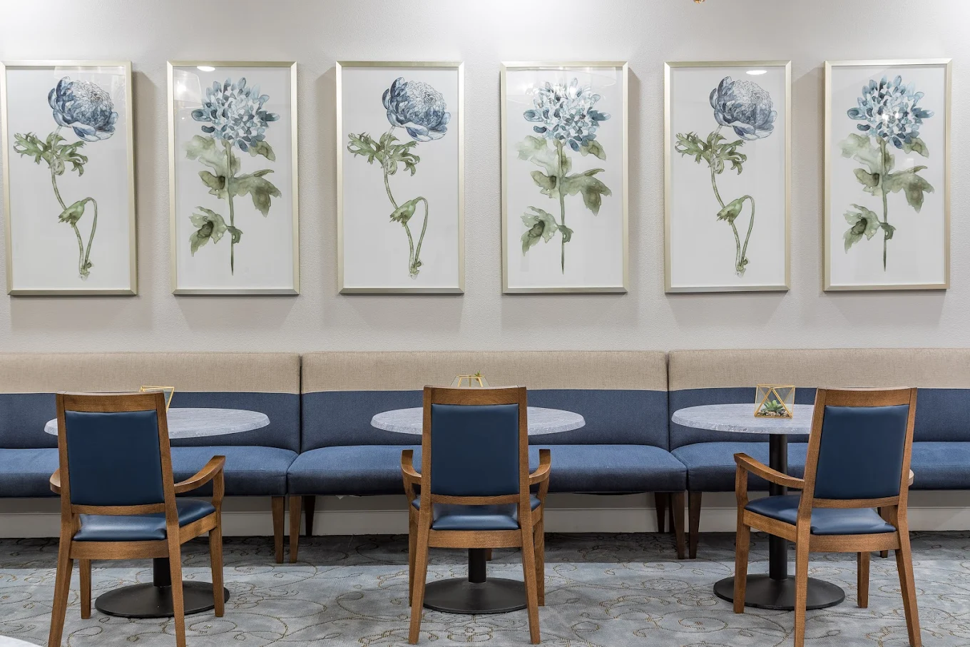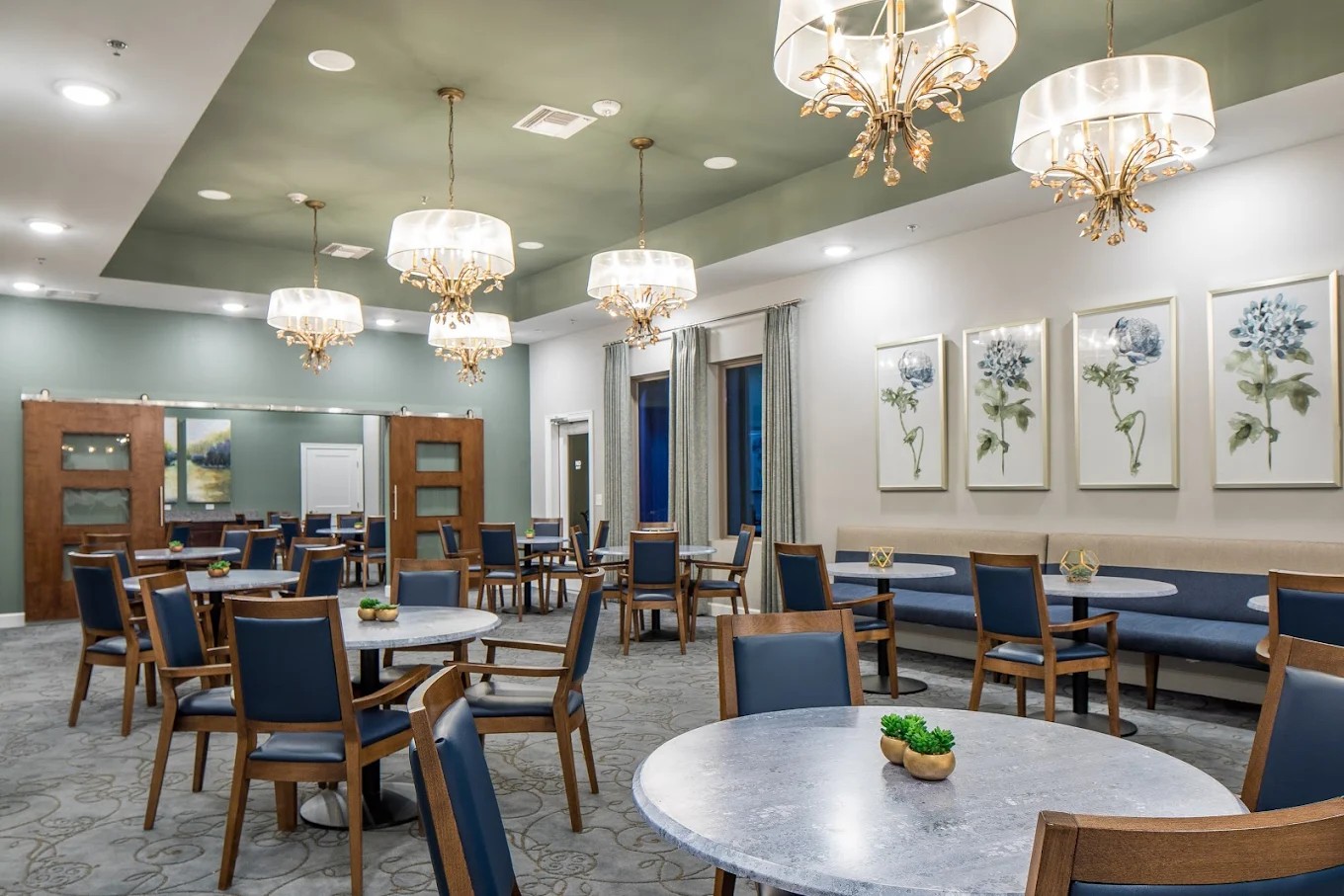 Imagine yourself or a loved one enjoying chef-prepared meals in our elegant dining room, relaxing in the sun-lit common areas, or spending time outdoors in our private courtyards.